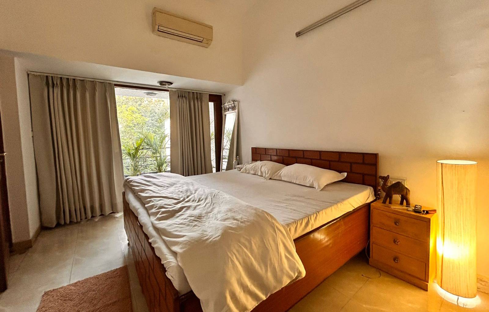 Step into a spacious, sunlit room featuring a plush queen-size bed, premium linens, air conditioning, and tasteful panda-inspired decor that reflects the playful spirit of the hostel. The highlight? Your own private balcony, where you can sip your morning chai, read a book, or simply enjoy the view of the lively Kailash Colony neighborhood.